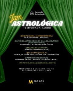 Nos encontramos con Dafna Nudelman, La loca del Taper. Vamos a grabar el segundo episodio de Aprende astrología para entender el mundo La revolución ecológica Además, vienen Gigi Polezzeli, Lu Gaitan, Mel Knarik y Alex Jauría a dar charlas taurinas.